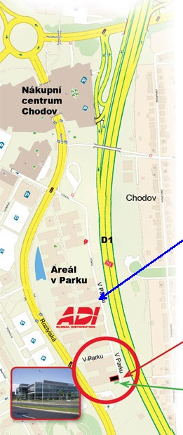Adresa:Praha 4 - ChodovV Parku 24148 00 zobrazit na mapě tel.: +420 271 001 700, 711 obchod.praha.cz@adiglobal.com Otevírací doba:Po - Pá 8:00 - 16:30 Jak se k nám dostanete?Pokud jedete z centra po D1, odbočte na EXIT 1a CHODOV nebo EXIT CHODOV. Pokud budete potřebovat asistenci, prosím zavolejte nám. Těšíme se na Vaši návštěvu!